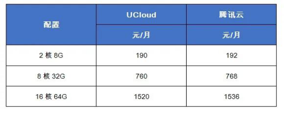 因此,UCloud快杰云主机的列表价实际均低于腾讯云SA2机型:
