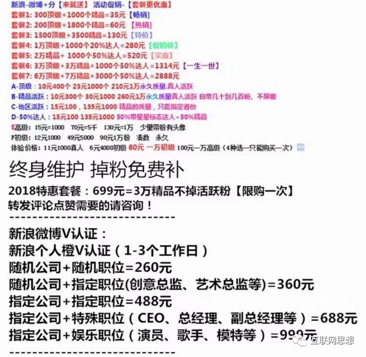 根据曹先生的提示,记者在某电商平台上,输入新浪微博的名称,系统优先给了大量帮助用户涨粉丝或是数据增量的业务选项。10元钱的基本套餐,就能买到400个粉丝,或可以转发指定微博100次。还可根据需求,实现粉丝活跃程度和地域真实性的专门订制。卖家称有很多艺人和网红都来找他们购买过。