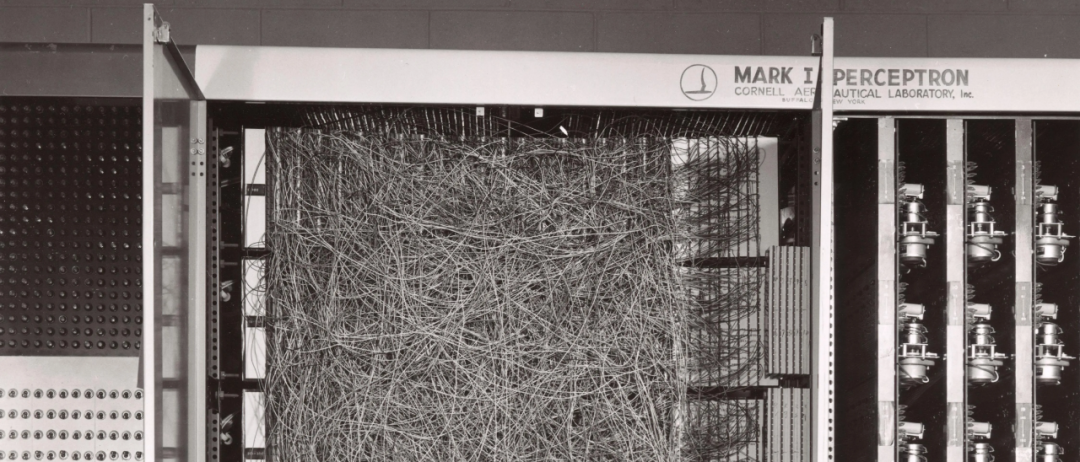 一个开创性的例子是感知机,这是一种由康奈尔大学心理学家弗兰克罗森布拉特在美国海军资助下建造的实验机器。它有 400 个光传感器共同充当视网膜,向大约 1,000 个神经元提供信息,这些神经元能够进行处理并产生单个输出。1958 年,《纽约时报》的一篇文章援引罗森布拉特的话说,“机器将成为第一个像人脑一样思考的设备”。
