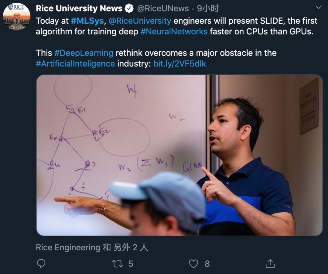 绍莱斯大学的计算机科学家们提出深度学习框架,在大型工业级的推荐数据集上验证了在没有类似于 GPU 的专业硬件加速条件下,也可以对深度学习进行加速。
