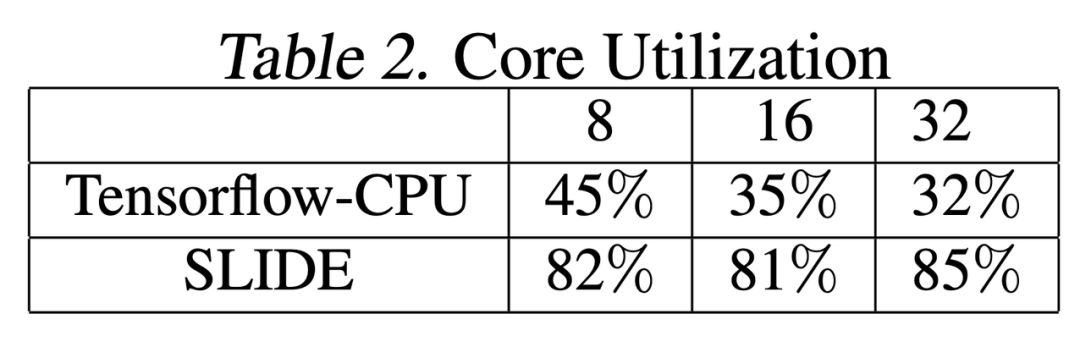 SLIDE 对于计算核心的利用率要远远高于 TF-CPU 的利用率。
