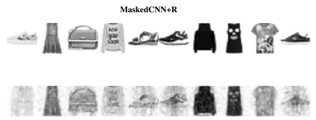尽管上述系统是针对 CapsNet 的信息姿态参数而设计的,相同的策略也可以扩展到 CapsNet 以外的模型。通过使用标准的 CNN 并将倒数第二个隐藏层分为对应每个类别的组,我们创建了一个类似的架构「Masked CNN+R」。每个神经元组的和作为对应类别的逻辑值。并且通过 Sabour 等人使用过的相同 masking 操作,这个组自身会被传递到重建子网络。我们还研究了通过忽略 masking 并使用典型「CNN+R」模型来探索类别条件重建的作用,其整个倒数第二层被用于重建。