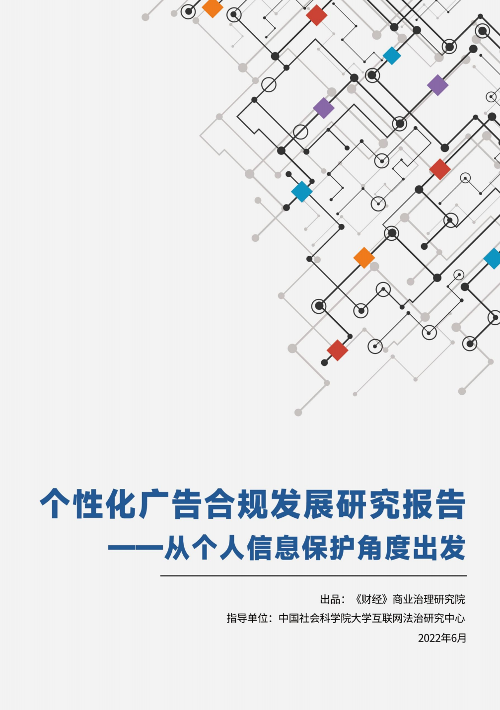 2022年6月20日,《财经》商业治理研究院与中国社科院大学互联网法治研究中心联合发布了《个性化广告合规发展研究报告--从个人信息保护角度出发》(以下称《报告》)。《报告》介绍了当前互联网广告行业的发展现状及趋势,个性化广告发展历史及原理,面临的困境与解决思路,以及当前隐私计算技术的发展方向。