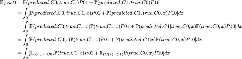其中 C(.) 定义分类器函数。因此,如果我们想要最小化期望预测成本,理论最佳分类器 C(.) 最小化