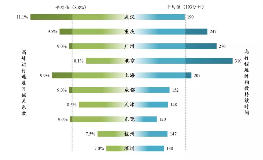 晚高峰更长:深圳、广州、东莞、武汉、成都、天津