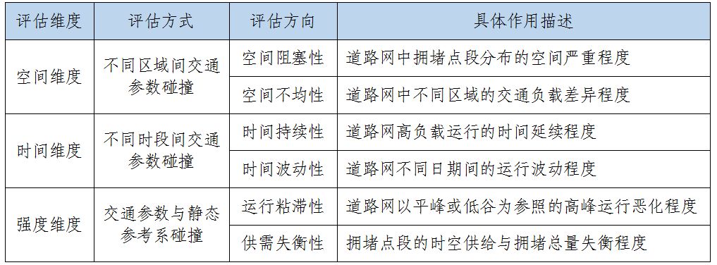 构建多维度交通运行评估指标旨在从时间、空间、强度等不同维度全面描绘城市交通运行情况,从而反映不同城市差异化的动静态规律特征。