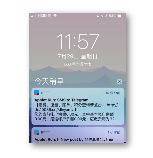 如果你有选择每次运行都通知的话,在 iPhone 上就能收到 IFTTT 的通知,或者你也可以到 Telegram 上查看。
