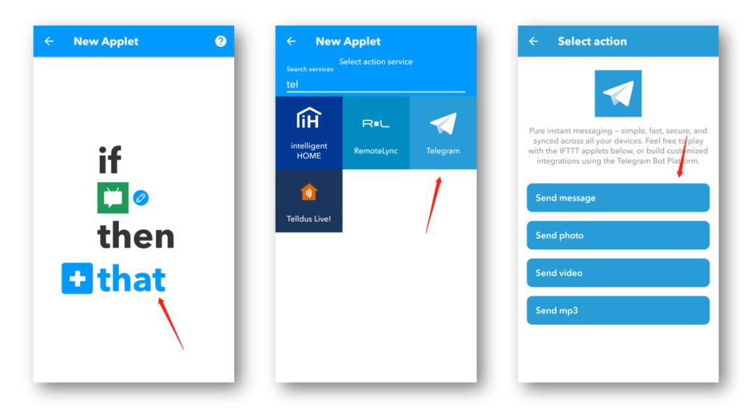 2、 点击“ that ”同样搜索找到 Telegram ,选择第一项 “ Send message (发送消息)”