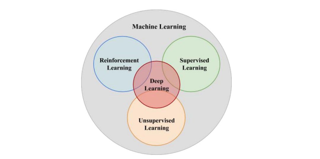 强化学习既不是监督学习,也不是无监督学习。强化学习的目标是获得最大的预期累积奖励(Sutton & Barto, 2018)。图2展示了机器学习、监督学习、无监督学习、强化学习和深度学习之间的关系。