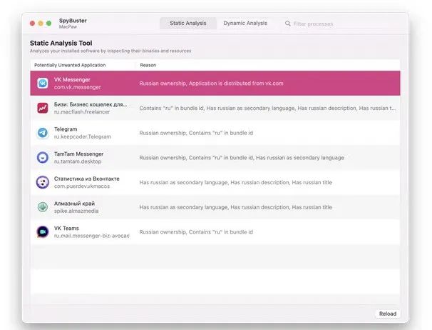 静态分析可显示 Mac 中与俄罗斯或白俄罗斯有某种关联的应用: