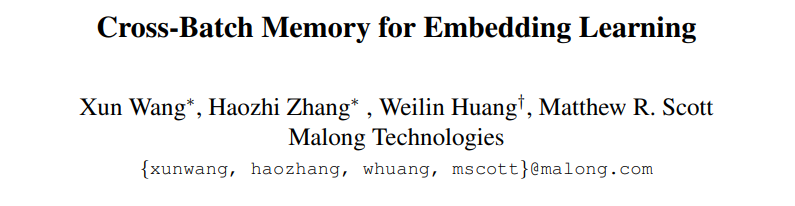 论文《Cross-Batch Memory for Embedding Learning》,作者来自码隆科技。本篇论文解读首发于“码隆播报”公众号。