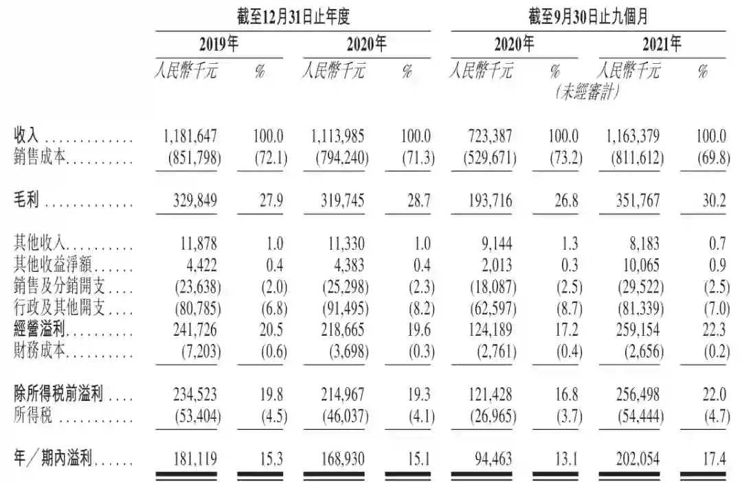 净利润方面,杨国福在2019年实现净利润1.81亿元,2020年略下滑至1.69亿元。到2021年前三季度,杨国福的净利润达到2.02亿元。整体毛利率从27.9%,提升至目前的30.2%。