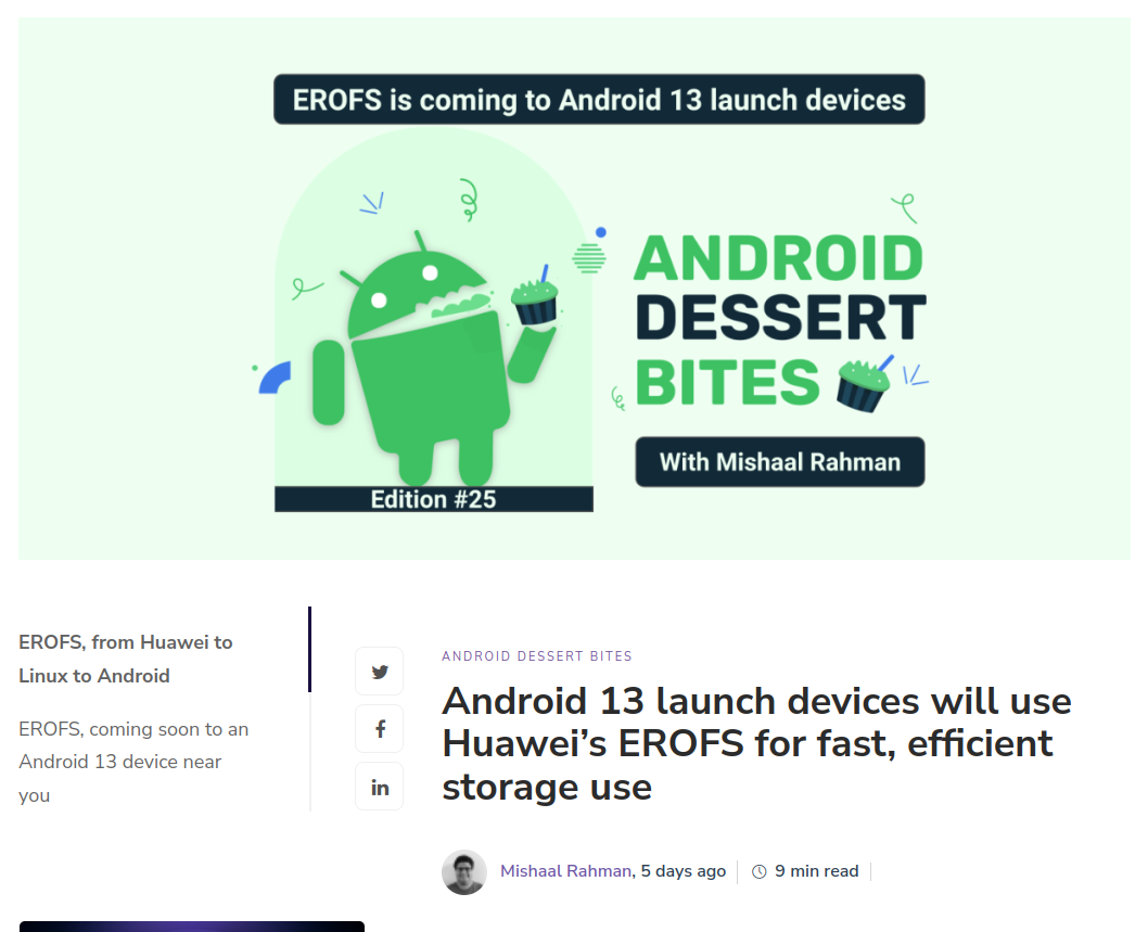 可以说,EROFS 解决了传统文件系统的一大难题,EROFS 文件系统是如何从华为走到广大安卓手机上的呢。