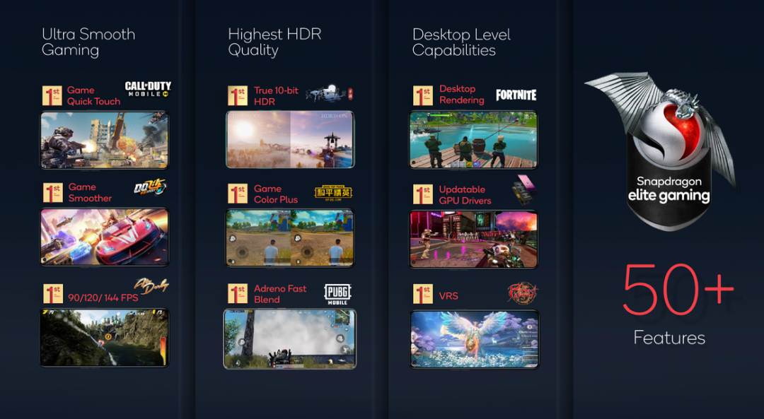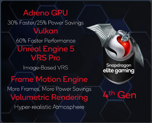 Adreno GPU搭配Snapdragon elite gaming可带来50多种极佳的游戏增强体验,身临其境不再是空谈。