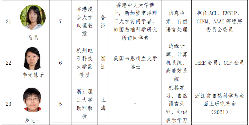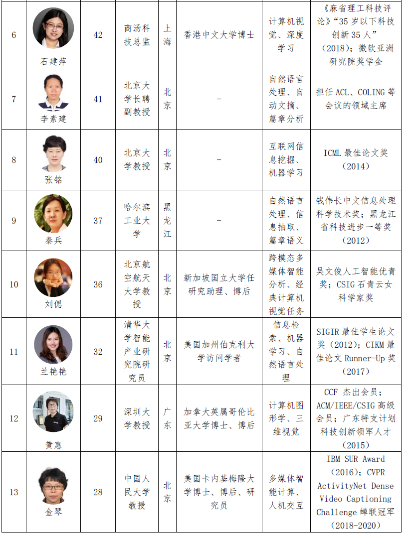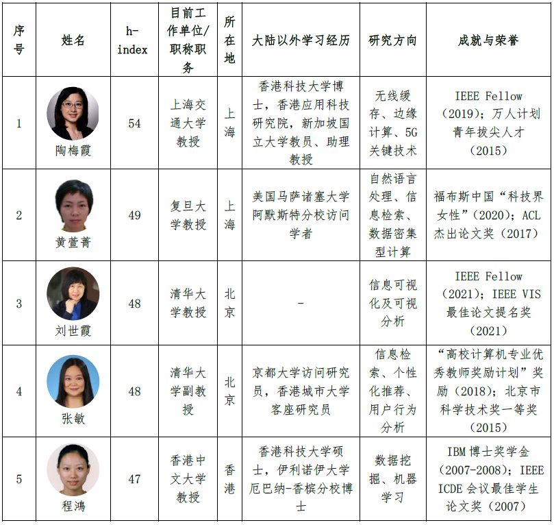 表5 2022 年中国人工智能相关领域全球女性学者列表