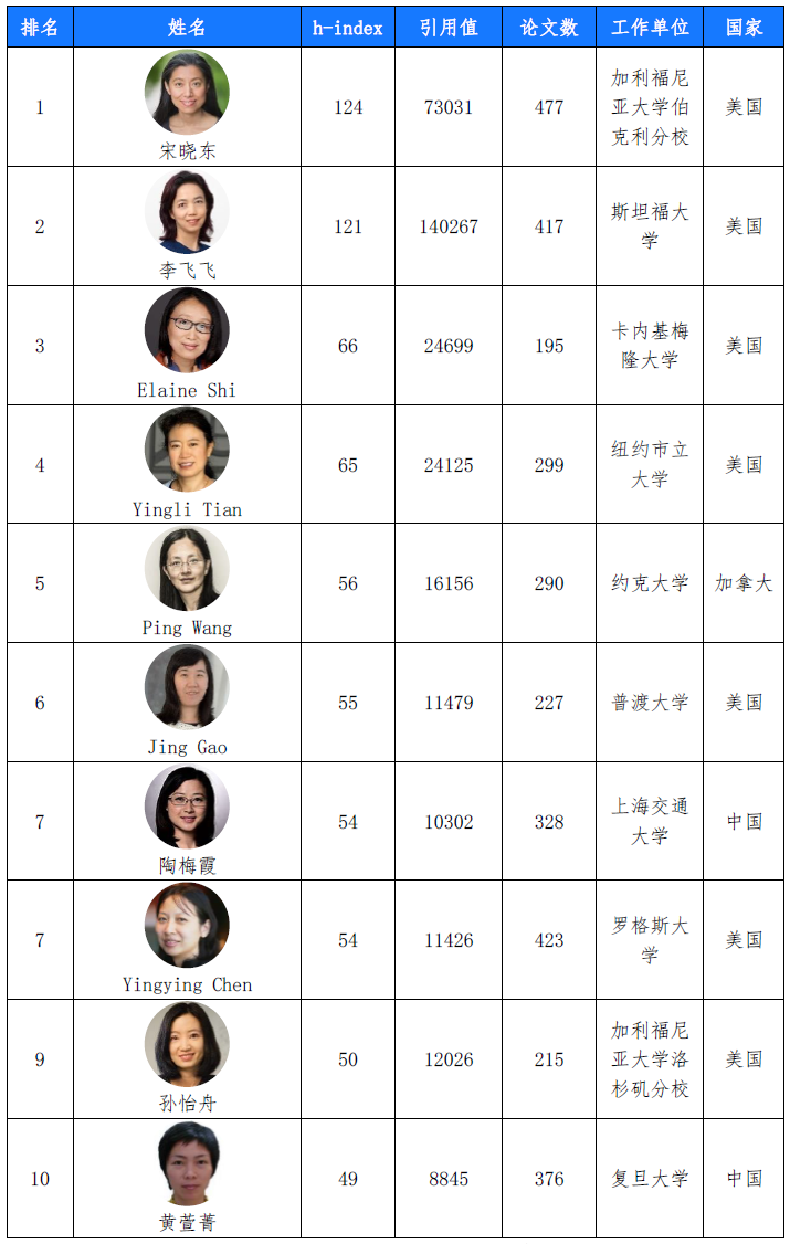 表4 2022 年 h-index 前十强华人女性学者信息统计