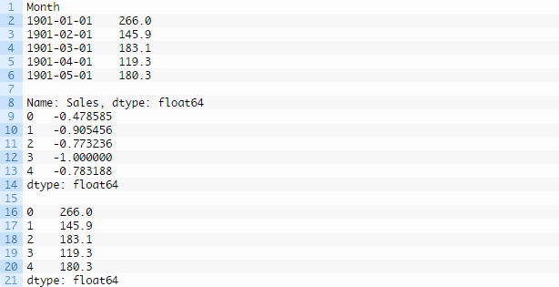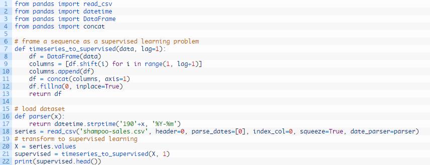 我们可以用载入的洗发水销量数据集测试该函数,并将它转化为监督学习问题。
