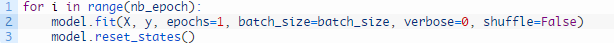 在训练期间,每个epoch结束后都对内部状态进行重置。在进行预测时,我们将不会在预测中间重置内部状态。事实上,诶吗希望模型形成状态,因为我们预测测试数据集的每个时间步。