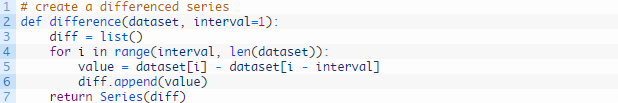 我们可以通过调用pandas库中的diff() function函数自动完成此步。另外,我们还可以获得更好的控制,用我们自己编写的函数完成此步,在该例中我们将采用这种方法,因为它具有灵活性。