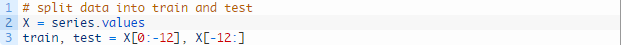 我们将把洗发水销量数据集分为两组:训练组和测试组。