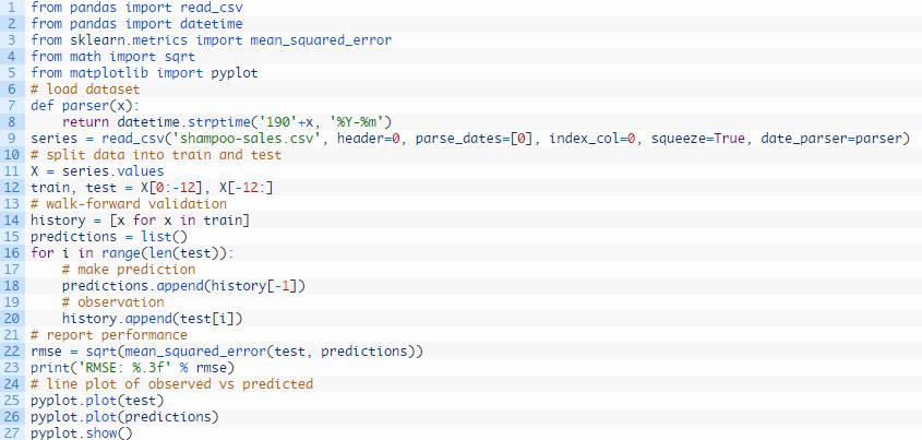 洗发水销量数据集持续性预测模型的完整示例如下所示。