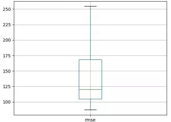 我们可以将模型拟合和步进验证包含在固定重复次数的循环语句中。运行每次迭代得到的均方根误差都能记录下来。然后我们可以总结均方根误差的分布。