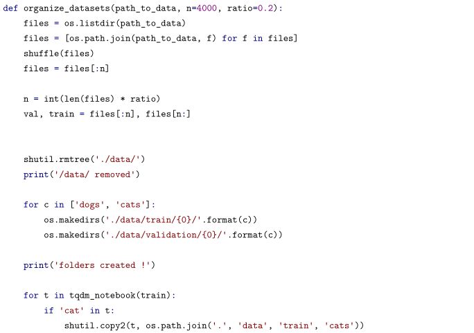 这个文件结构让我们的模型知道从哪个文件夹中获取到图像和训练或测试用的标签。这里提供了一个函数允许你来重新构建这个文件树,它有 2 个参数:图像的总数目、测试集 r 的比重。