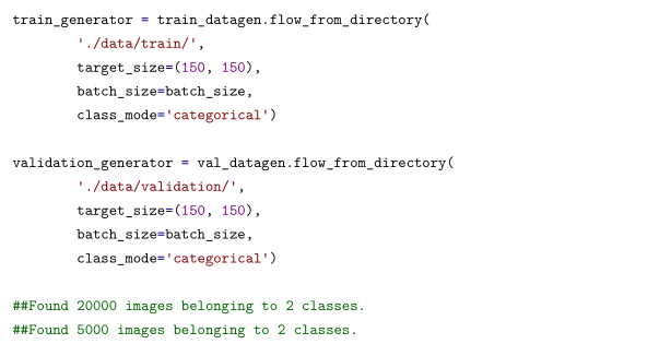 每个生成器在实时数据增强的作用下,在目录处可以生成批量的图像数据。这样,数据将会无限制地循环生成。