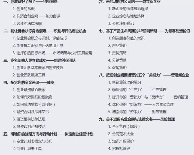 系统。整套商品基于创业的关键步骤而设计,内容自成体系且创业要点突出,可以一路支撑读者的创业成长;