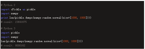 节省 3 倍空间,而且速度更快。实际上,类似的压缩(不过与速度无关)可以通过 protocol=2 参数来实现,但是用户通常会忽略这个选项(或者根本不知道)。