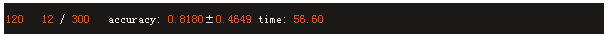 print('{:3} {:3} / {:3} accuracy: {:0.4f}±{:0.4f} time: {:3.2f}'.format(