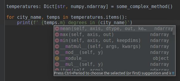 在使用 Java、C# 等语言编程的过程中最令人享受的事情是 IDE 可以提供非常好的建议,因为在执行代码之前,所有标识符的类型都是已知的。