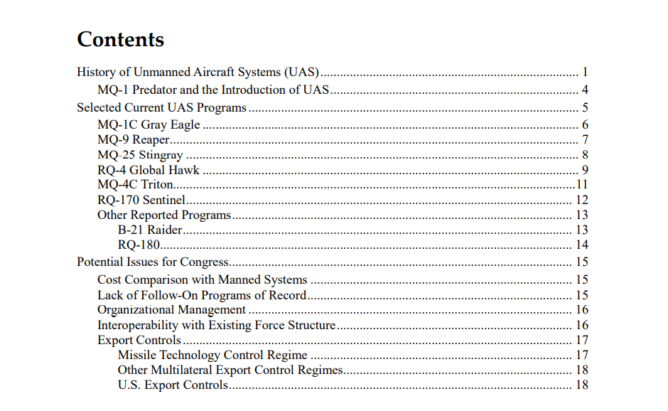 此外,其他几个被报道的项目要么正在开发中,要么正在试验中。这些项目包括空军的B-21“突袭者”和空军的RQ-180。随着国会履行其监督和授权职能,它可能会考虑与UAS项目相关的几个潜在问题,包括: