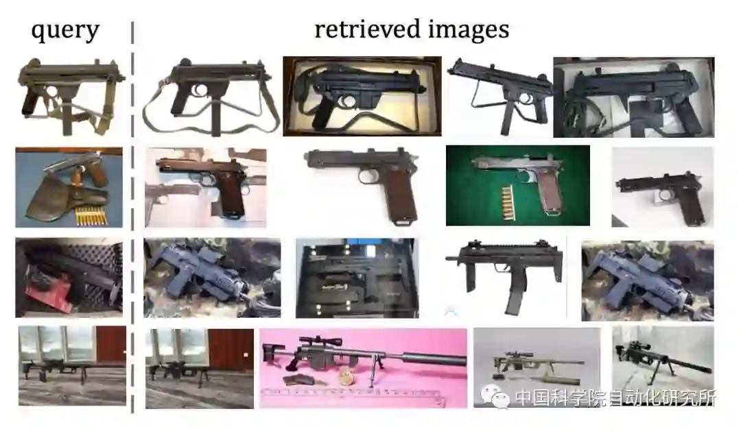 自动化所智能感知与计算研究中心的郝杰东,董晶,王伟和谭铁牛团队对枪支图像精细检索问题进行了研究,建立了大规模强制图像数据库的基础上,提出了基于双阈值对比损失函数(double margin contrastive loss)的方法来调整模型,有效提升了检索性能。