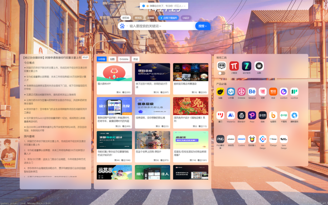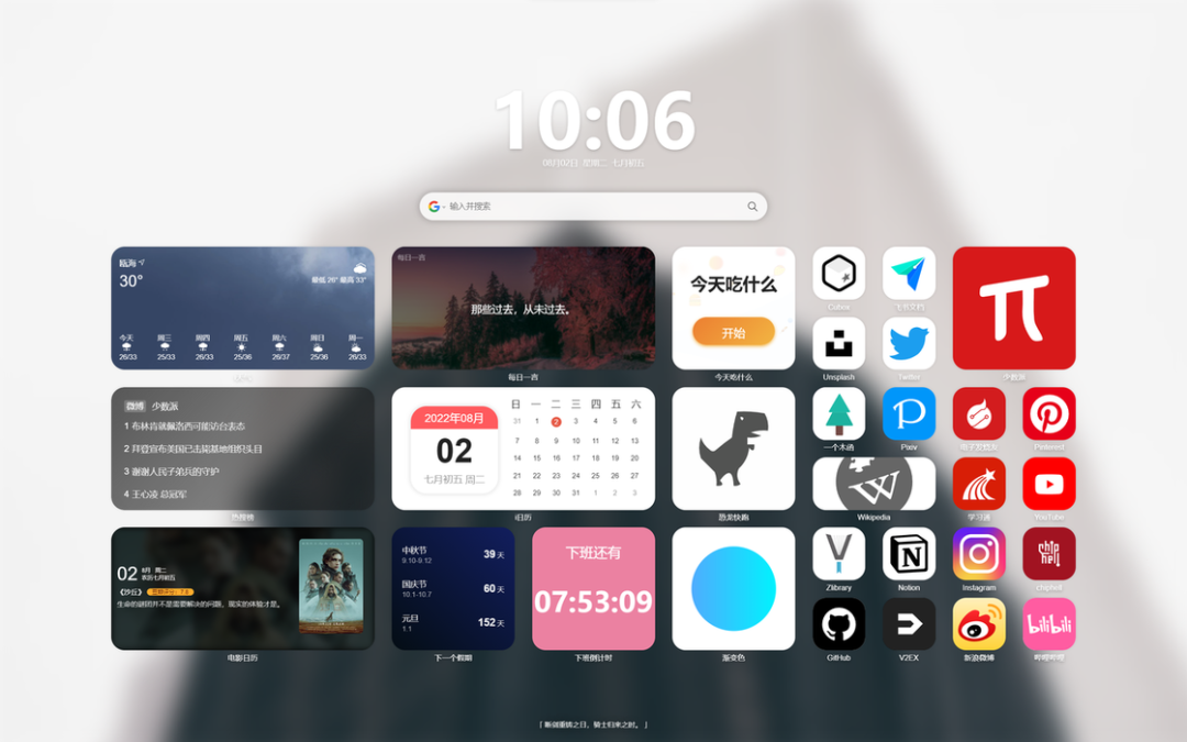 开发的启动页,以「摸鱼」起家,如今更加入了资讯聚合等帮助你在办公室高效内卷的功能