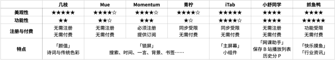 以上就是我想和你分享的七个启动页插件以及它们间的横向对比,它们有些颜值至上、没有丰富的功能、有些为了更好的功能性牺牲了简洁之美。但它们并没有绝对的「yyds」,你可能和我一样只希望标签页拥有美丽的皮囊,也可能和甜食老师一样希望标签页是纯粹实用主义导向,又或者像 JLDUAN 老师一样希望标签页回归原始的白色,我们很难找到一款「全能」的启动页,但总能找到最适合自己的。