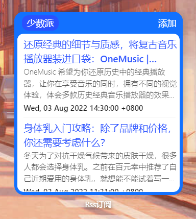 抓鱼鸭的开发者笑称自己是「iTab 的拙劣模仿者」,但抓鱼鸭的小组件也有一些深得我心的功能。例如 RSS 订阅。我可以在启动页上快速浏览少数派和作者朋友们的 Newsletter,找到感兴趣的内容后愉快地开始摸鱼。除了 RSS,抓鱼鸭还提供了扫雷、速记、中午吃啥等或有趣或实用的小组件可供选择。