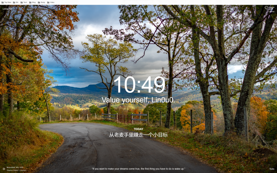 Momentum 是一款和 Mue 十分相似的启动页插件,除去时间、问候、鸡汤等部分,Momentum 更加强调帮助使用者专注于需要完成的目标,通过固定在主页显示设定的目标,试图让你在打开浏览器试图摸鱼时「重回正轨」。