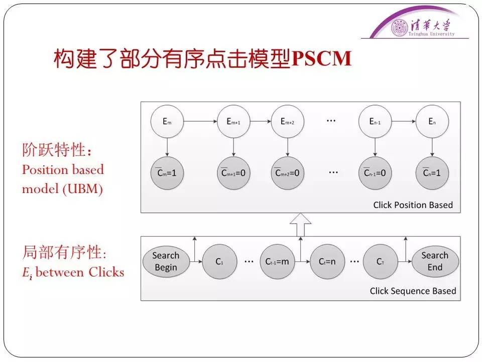 在这两个假设的基础上,再结合已有点击模型的合理假设,我们构造了一个部分有序点击模型PSCM。这样,我们就在原有的UBM模型上,把用户点击模型的问题描述得更好、讲得更清楚了。实验也取得了非常好的效果,相关论文获得了SIGIR2015最佳论文提名奖。