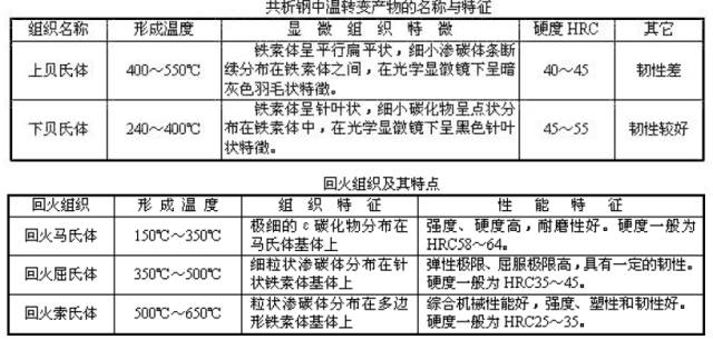 残余奥氏体(200-300度):高温区回火时,先析出碳化物,随后分解为珠光体。 低温区回火时,将转变为贝氏体。