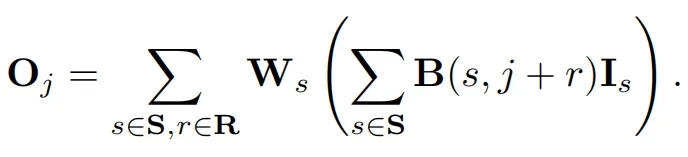(注意,这里的圆形的卷积核的公式看上去比较复杂,但其实由于乘法的结合律,这里的矩阵和其实是可以合成一个新的矩阵的,所以在测试的时候其实并不会引入新的计算量和参数量)