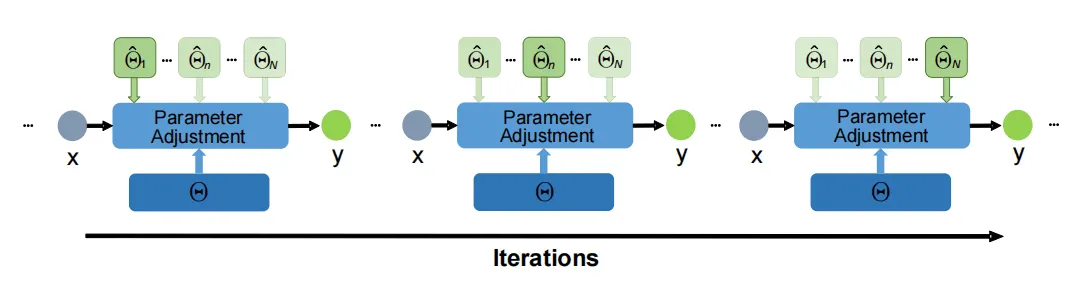 其中 是一个多重伯努利分布,因为每一层的卷积过程都是随机的,每一层随机从N种卷积方式里选择一种,对于L层,就有 种不同的组合方式。