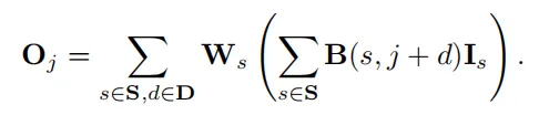 对于一个3x3的方形卷积,可以用下面的公式表示(对感受野内的特征进行加权求和):