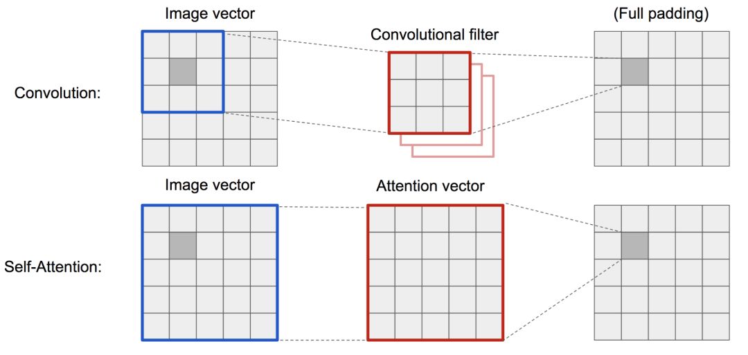 图19 卷积操作和自注意力机制访问到的区域大有不同