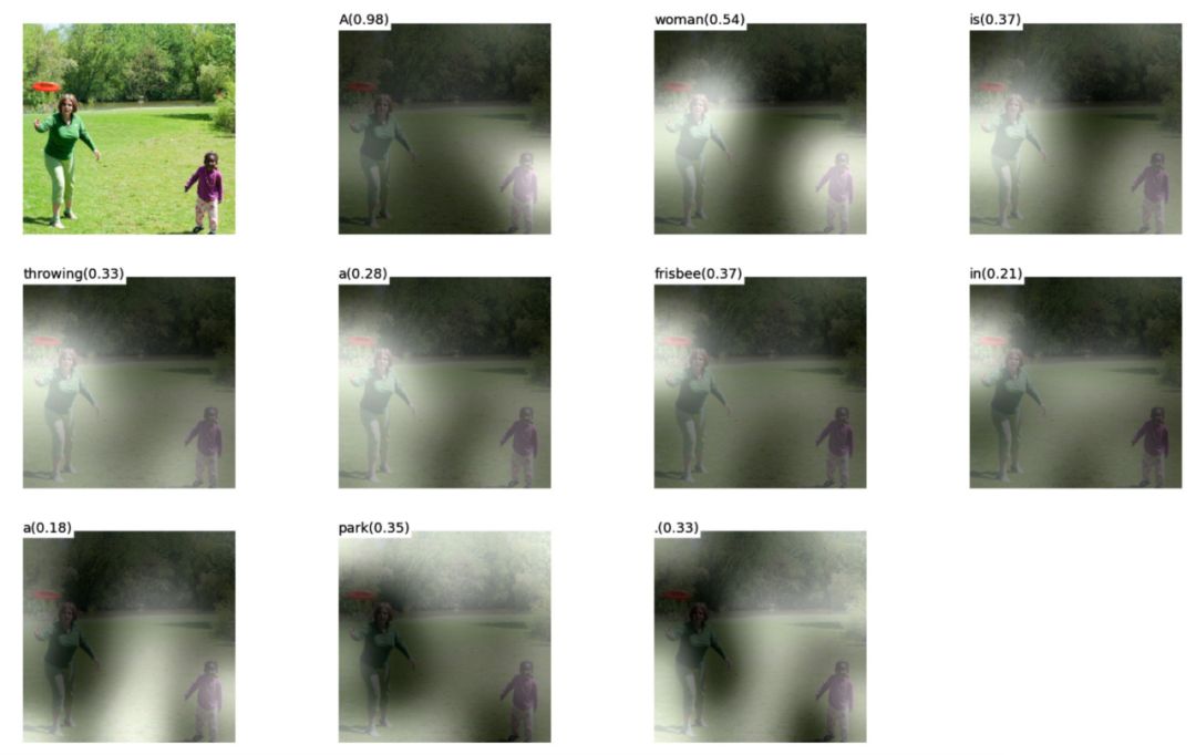 在“Show,attend and tell”这篇文章中,自注意力机制应用于图像以生成适当的描述。图像首先由卷积神经网络进行编码,具有自注意力机制的递归神经网络利用卷积特征映射逐条生成描述性词语。注意力权重的可视化清晰地展示了模型为了输出某个单词而关注图像的某些区域。