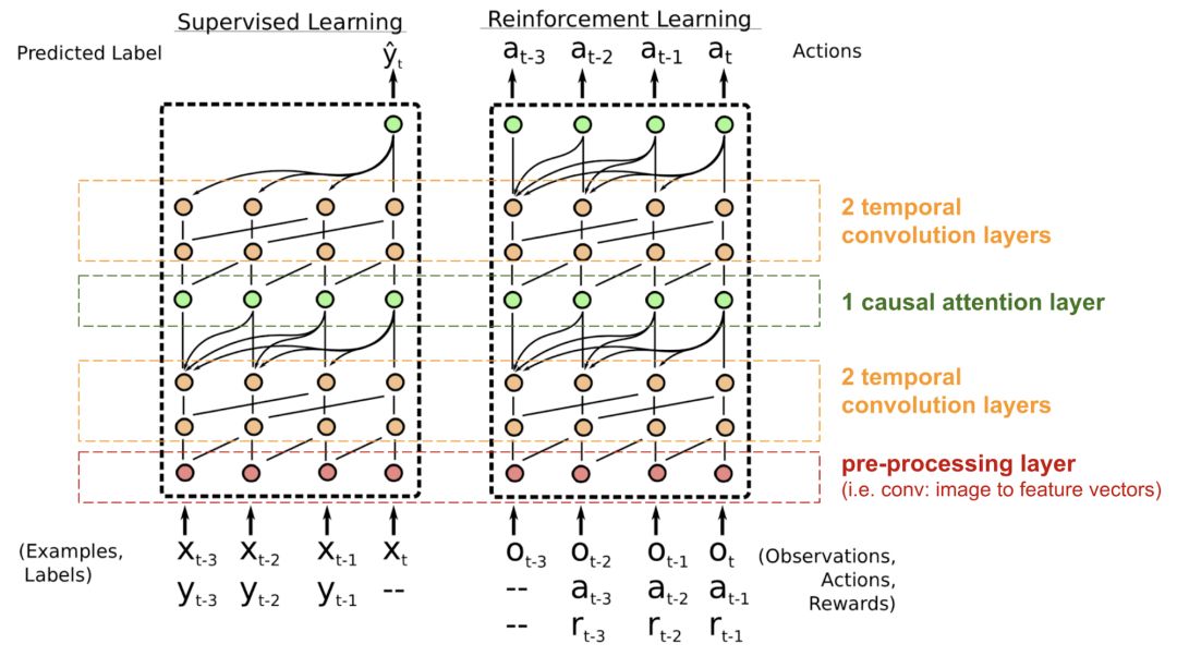 简单神经注意力元学习(Simple Neural Attention Meta-Learner)简称SNAIL,通过将Transformer的自注意力机制与时序卷积相结合,部分解决了模型中位置编码的问题。它已被证明擅长解决监督学习和强化学习任务。