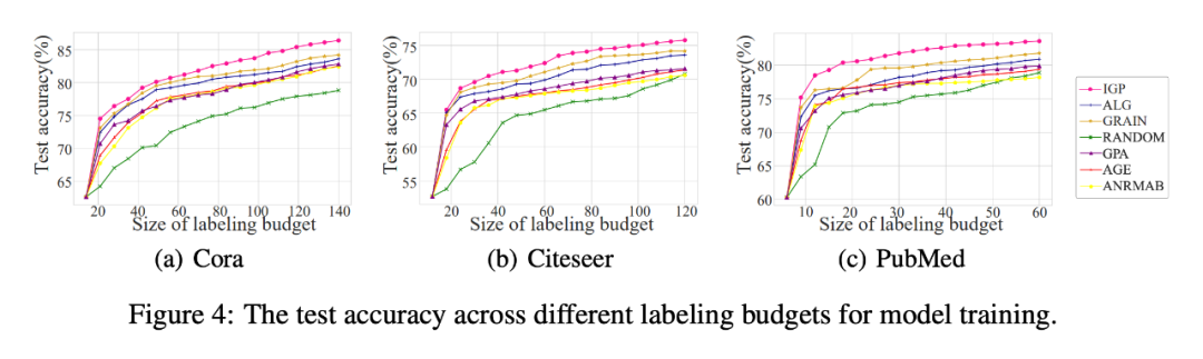 我们测试了所有方法随着选点预算增加时的准确率,结果如图,证明 IGP 方法在任何选点预算下都优于其他方法。