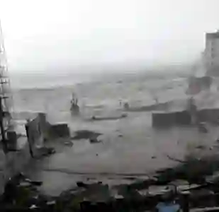 一个台风的能量等于多少个原子弹?原子弹的能量一般采用TNT当量来折算,一千克TNT爆炸时产生的能量约4190千焦。1945年投放在广岛的原子弹折合14000吨TNT,产生的能量约5.87*1010千焦。水蒸汽凝结为液态水释放的潜热为2500.8焦耳/克。台风有1千克的降水,相当于释放了2500.8千焦的能量。假设台风中心半径附近100公里以内均出现了50毫米的暴雨(实际上可能还会有大暴雨、特大暴雨),降雨均匀洒在圆形面积上,大约每小时2毫米降雨折算为6.28*1010千克的水,对应1.57*1014千焦能量,也就是台风每小时释放的热量对应2600多颗广岛原子弹爆炸的能量。