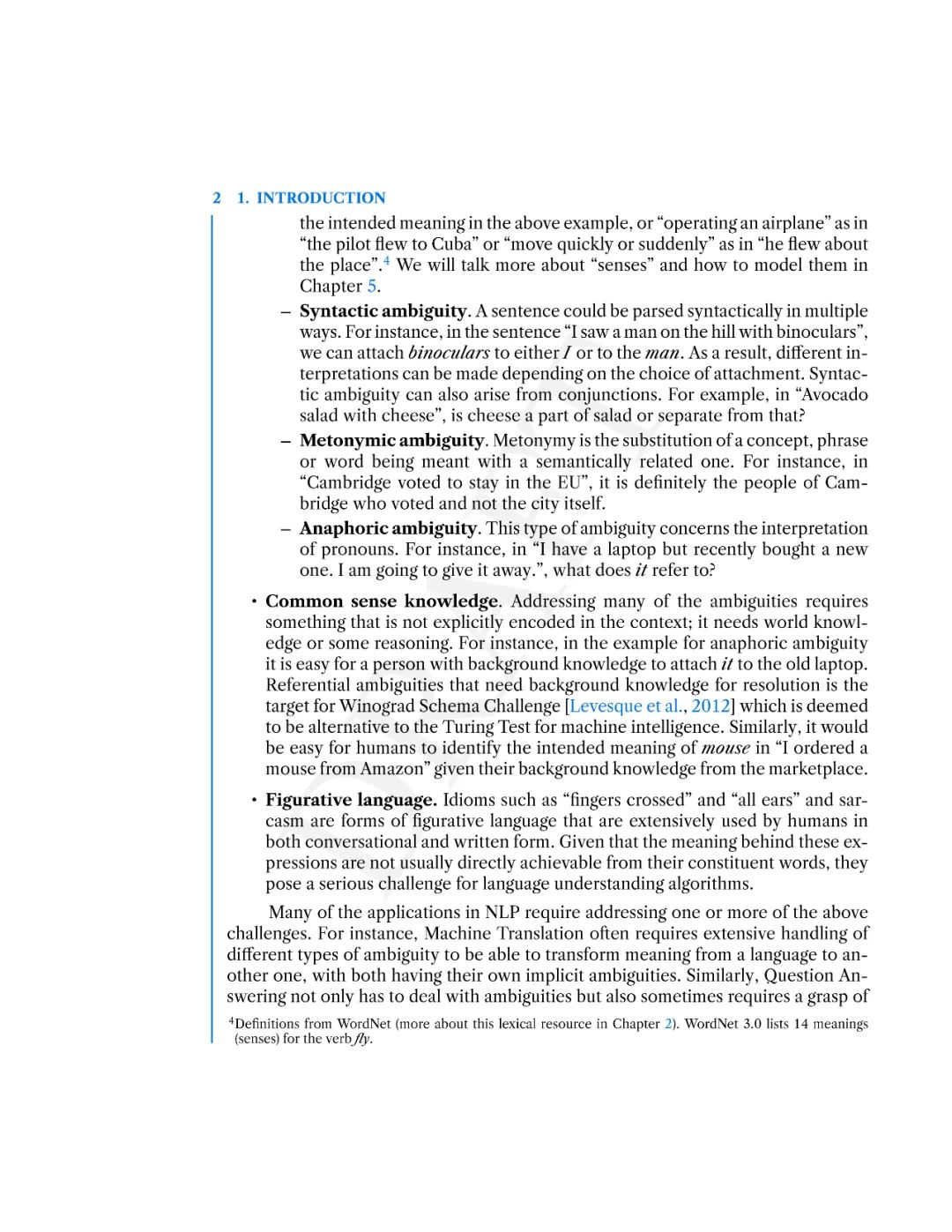 第7章超越了单词的层次,描述了如何将句子和文档编码成向量表示。我们介绍了一些著名的监督和非监督技术,并讨论了这些表示的应用和评估方法。