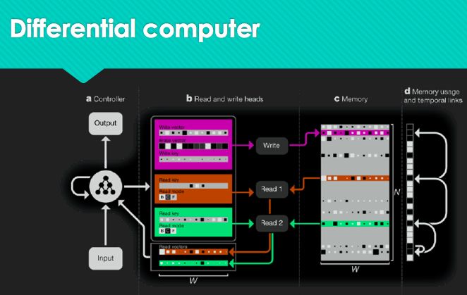 例如,图像中具有大量的平移和旋转不变性,而人类设置了卷积神经网络这种可提取多层次信息的架构,很好地将图像中的深层次信息学出来。对时间序列,我们也可以设计RNN的架构(及其变体)来学习到时间序列中的隐藏信息。当然,我们还有类似于Attention机制等更先进的架构去关注数据中的关联关系,又或者Deepmind推出的“可微分计算机”——它与冯诺伊曼的计算机体系完全不同,这可以让我们去学习整个冯诺伊曼的计算机体系。